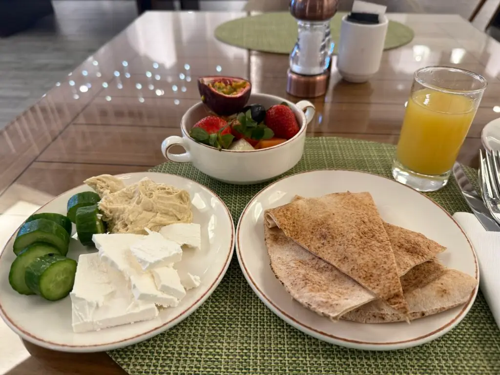 Das Frühstücksbuffet ist solide und bietet eine gute Auswahl an lokalen Spezialitäten – darunter Hummus, Feta und weitere arabische Köstlichkeiten. Das Personal wird von vielen Gästen als freundlich und hilfsbereit beschrieben, wirkt auf den ersten Blick jedoch etwas zurückhaltend. Hat man das Eis gebrochen, ist der Umgang angenehm und unkompliziert.