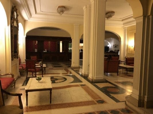 Die Zimmer ebenfalls opulent, allerdings konnte man da schon eher den Zahn der Zeit sehen, d.h. an einigen Ecken eher grob übergestrichen und ausgebessert. Im Bad dann mein persönlicher Endgegner jedes Morgens: die Mischbatterie der Dusche. Brutal heiß und eiskalt waren einfach. Alles dazwischen grenzte von der Filigranität an eine neurochirurgische Operation. Aber ich wurde jeden Tag etwas besser und am letzten Tag dauerte die Einstellung nur noch wenige Minuten 🙂