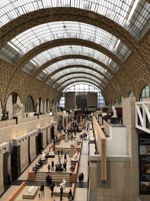 Das Musée d’Orsay ist in dem ehemaligen Gare d’Orsay untergebracht, einem zur Weltausstellung 1900 errichteten Bahnhof. Entsprechend stilvoll ist auch die Architektur. Eine hohe Haupthalle mit einem Tonnengewölbe als Dach. Immer noch sehr prominent die großen Bahnhofsuhren. Allein die Architektur des Musée d’Orsay ist einen Besuch wert.