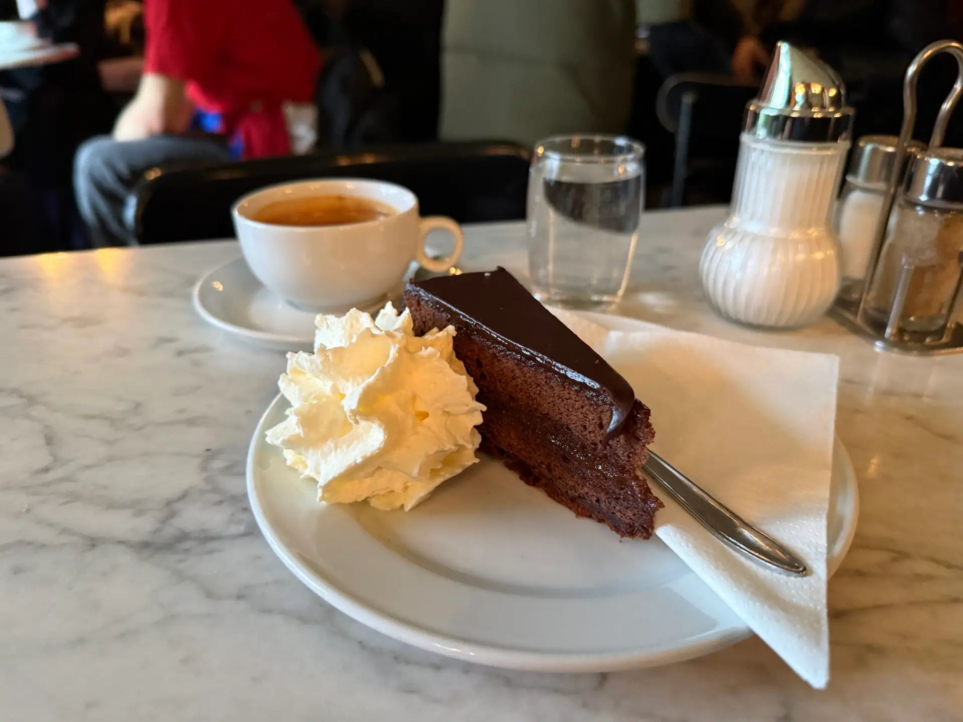 Zurück in der Innenstadt suchte ich mir zunächst ein Caféhaus. Fündig wurde ich im „Kleinen Café“ in einer ruhigen Seitenstraße – sehr urig, authentisch und nur mit Barzahlung. Kaffee und Sachertorte waren ausgezeichnet und angemessen bepreist.