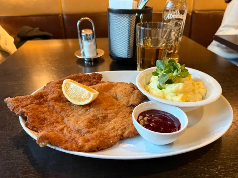 Am Abend bekam ich im „Schnitzel ONE“ endlich mein Original Wiener Schnitzel. Auch wenn es kein traditionelles Gasthaus ist – das Schnitzel war hervorragend und verschwand im Nu. Allerdings musste ich auch hier erst 20 Minuten in der Kälte anstehen.